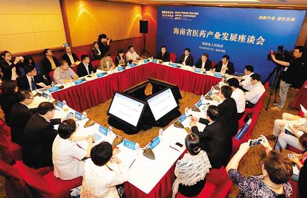 3月23日下午,博鳌亚洲论坛2016年年会系列活动之海南省医药产业发展座谈会在博鳌亚洲论坛国际会议中心召开。会议汇聚了国内医药行业领军人物和著名专家,海南博一吧白菜网站大全药业集团受邀出席。会议以“创新升级、绿色发展”为主题,共同商讨海南医药产业发展新思路、新举措、新愿景。海南省政府副省长陆俊华出席会议并讲话,海南省工信厅厅长韩勇主持会议。