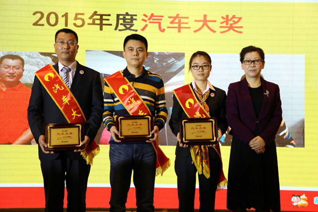 营销总经理楼春红为七位获得汽车大奖的区域经理颁奖