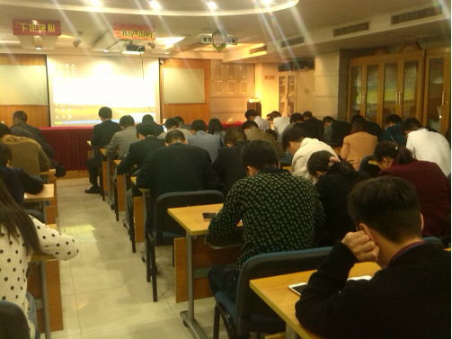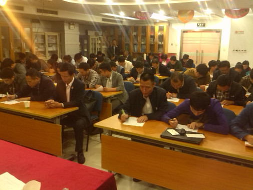 晚上不但对全体人员进行闭卷考试,而且对参会的全体大区经理进行了模拟实战演讲。